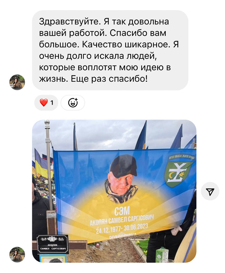 Наша команда дизайнерів розробила серію макетів для прапора з фото воїна. Ми адаптуємо один з них під фотографію Вашого воїна-героя: