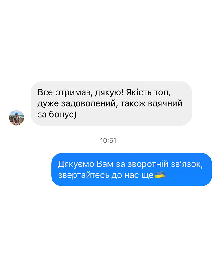 Співпрацюючи з нами, Ви можете бути певні, що допомагаєте українській економіці та її захисникам. Ми працюємо тільки по безготівковому розрахунку, не приховуємо дохід від податків. У повному обсязі сплачуємо податки згідно чинного законодавства без жодних пільг чи затримок.