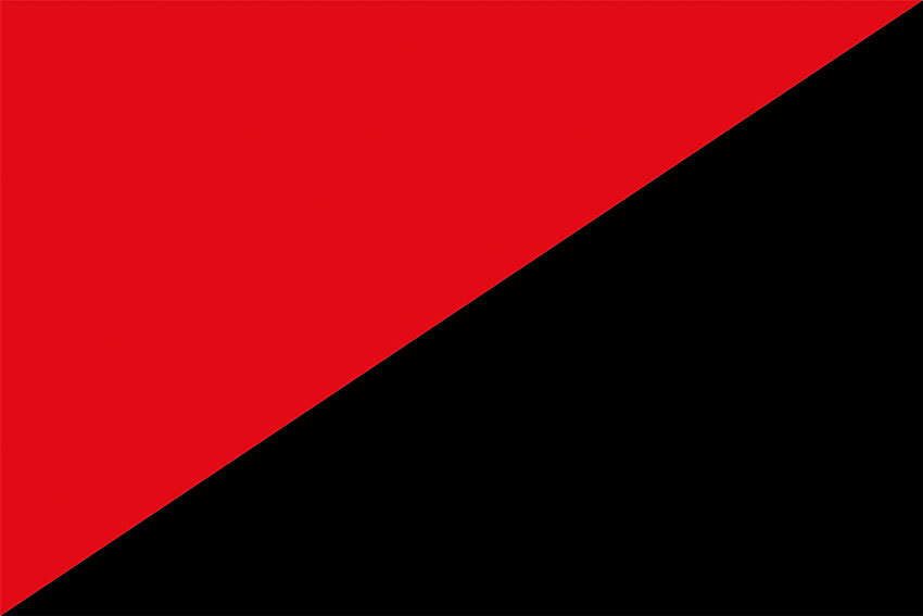 Прапор анархо-комуністів з друком виготовляємо з трьох видів тканин: прапорної сітки, атласу та габардину.