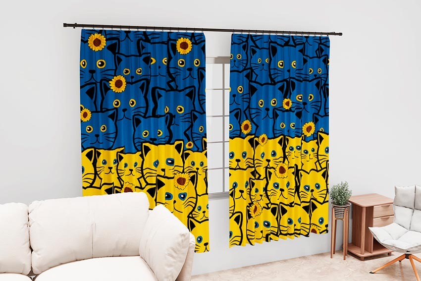 Створіть унікальний дизайн для Вашого інтер’єру за допомогою штор з принтом «Українські котики. Ukrainian cats». Дизайн штор від Prosublim бездоганно поєднує стиль і функціональність, додаючи нотку індивідуальності будь-якій кімнаті.