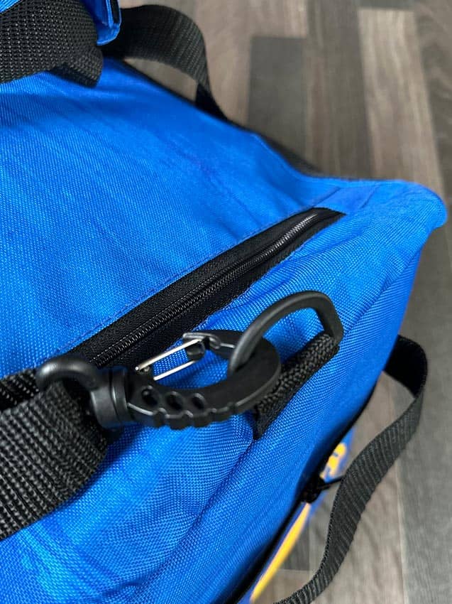 Сумка має внутрішню кишеню на блискавці і по одній кишені з кожного боку, також застібається на блискавку. Плечова лямка кріпиться за допомогою металевих карабінів на вшиті металеві півкільця. Дуже добре підходить як для зборів, поїздок на змагання і подорожей, а також для тренерів, тому що може вміщати в себе велику кількість спортивного інвентарю. Ви можете замовити спортивну сумку з друком назви спортивного клубу або команди, свого імені, nickname і т.і.